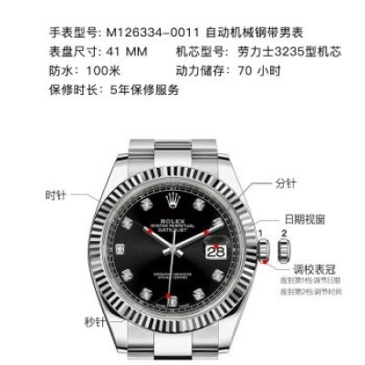 Home > Watch > cell phone > Swiss Rolex Watch Datejust 41 Series Automatic Mechanical Men's Watch M126334-0011 Black Disk With Diamond Three-Grid Chain