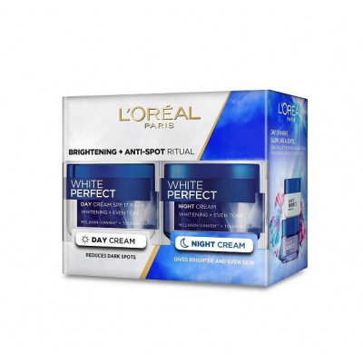 L'Oreal Paris Set of 2 White Perfecting Clinical Day Cream 50ml + Overnight Treatment Anti-Spot Brightening 50ml Total 2 Pieces.